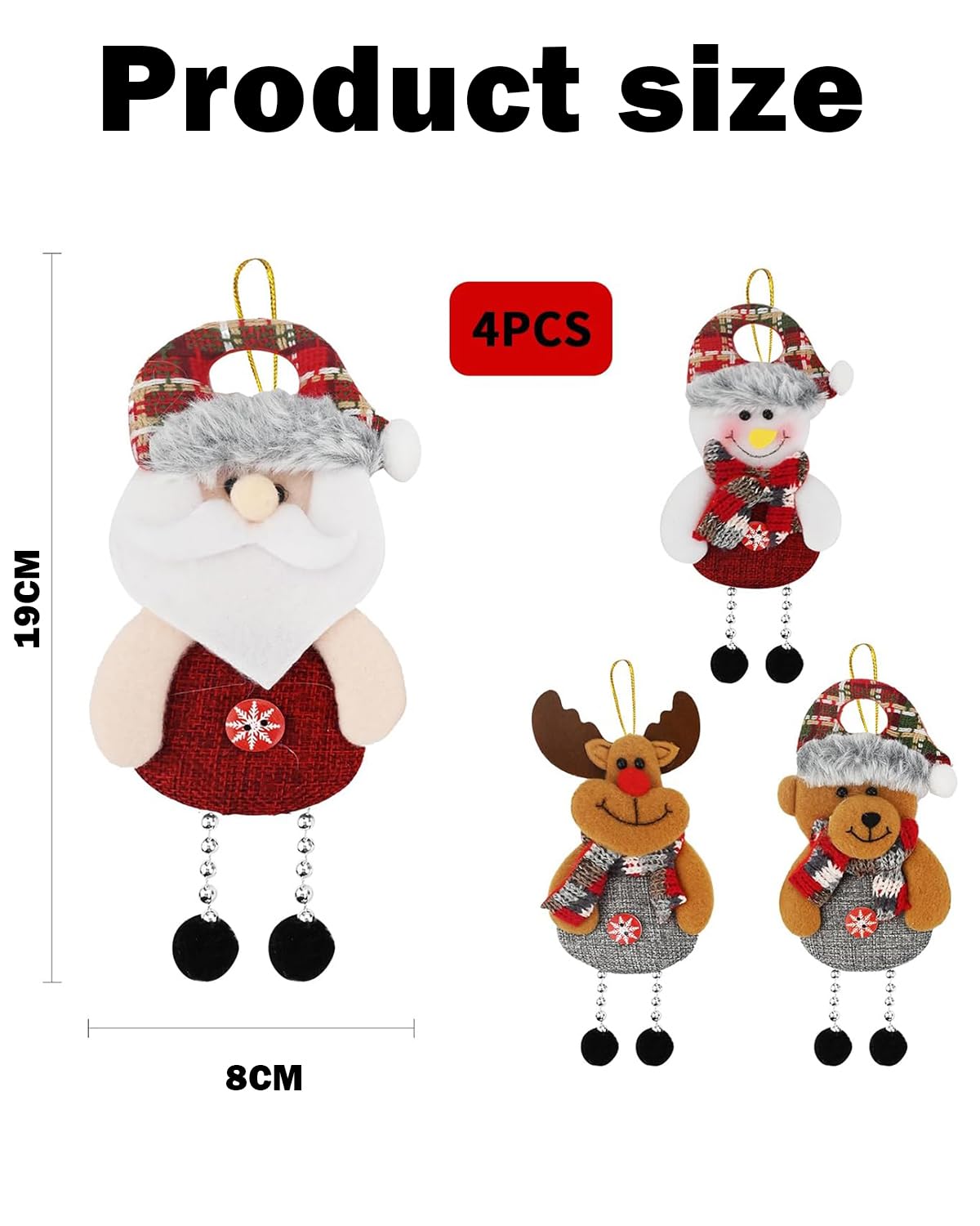 4 PCS Christmas Decorations Items, Christmas Tree Decoration Items, Reindeer, Bear Dolls, Santa Claus Christmas Ornaments with String Christmas Hanging Decor for Xmas Tree, Door, Home