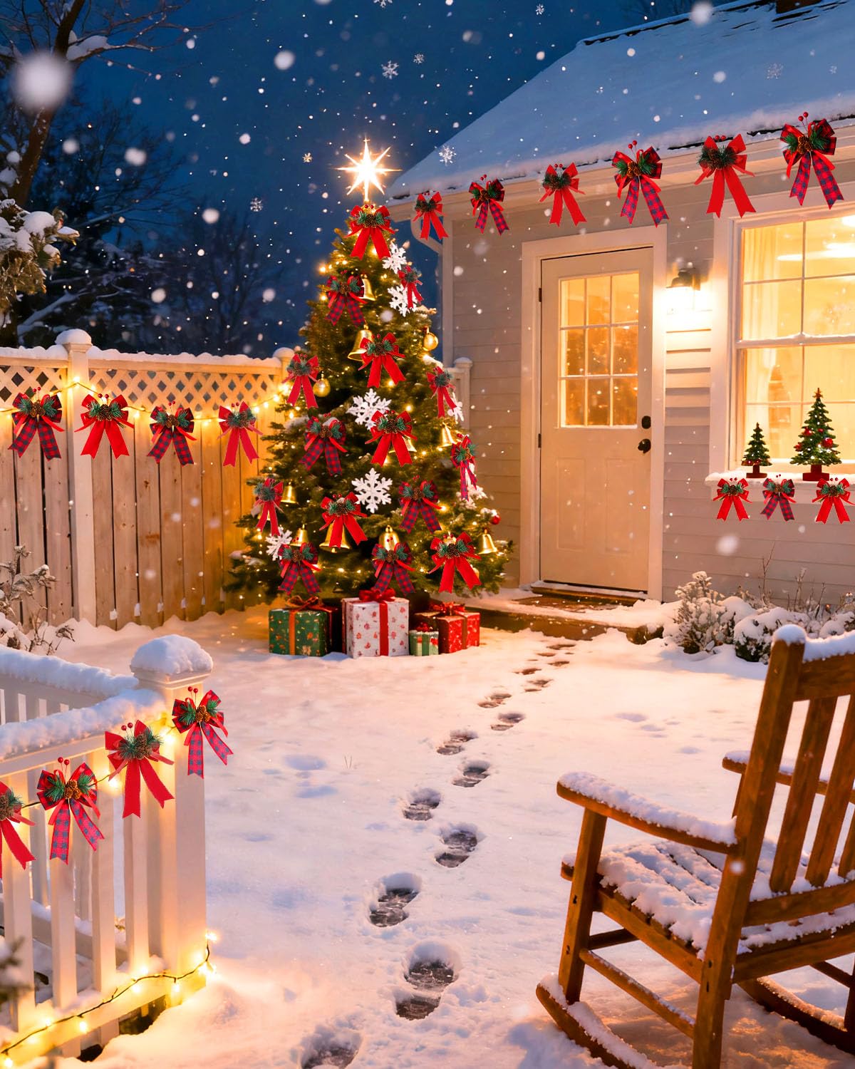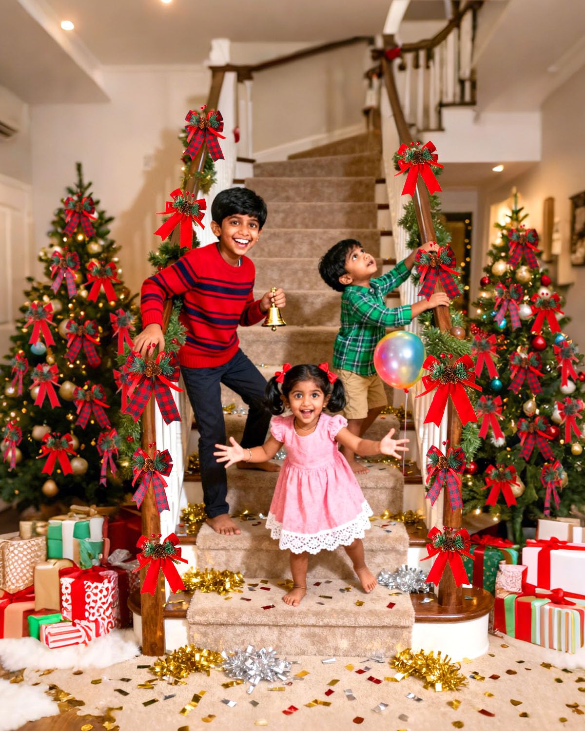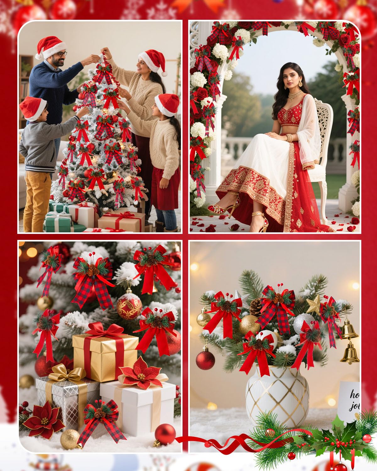 Rich Combo for a Festive & Coordinated Look: This set includes 4 beautiful Christmas bows – 2 in classic red-black plaid and 2 in solid red. Their colours are perfectly matched to easily create a strong Christmas vibe. Perfect as christmas tree decoration items, or for decorating your main door, living room, or balcony, they will fill your home with a warm festive feeling.
