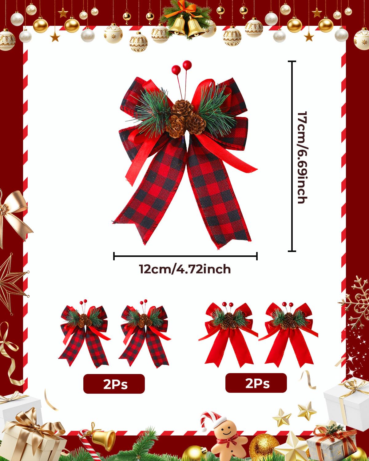 Multi-Use Decor for Every Corner: These bows are not just for Christmas! Use them for weddings, parties, family get-togethers, or to make your gift wrapping extra special. They also make for lovely stocking stuffers or add-ons to christmas gifts. With a size of about 17x12cm (6.69×4.72 inches), they are just the right size to fit and enhance any space, adding warmth and joy to your home.