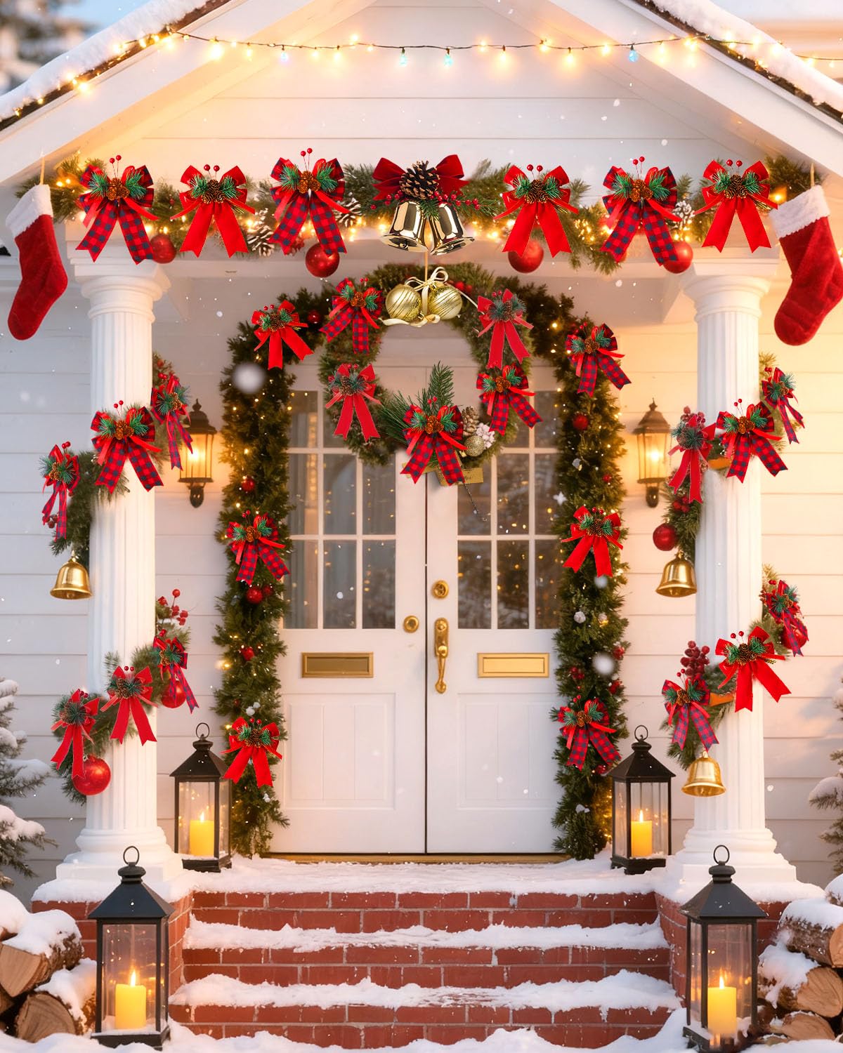 Easy to Install & Hang: Every Christmas bow comes with a attached golden wire. This makes it super easy to hang them on your Christmas tree, door handles, wreaths, gift baskets, or fireplace. You don’t need any extra tools – your decoration is done in just seconds, making festive setup fun and hassle-free. They can even be used to accent your christmas socks decoration on the mantelpiece.
