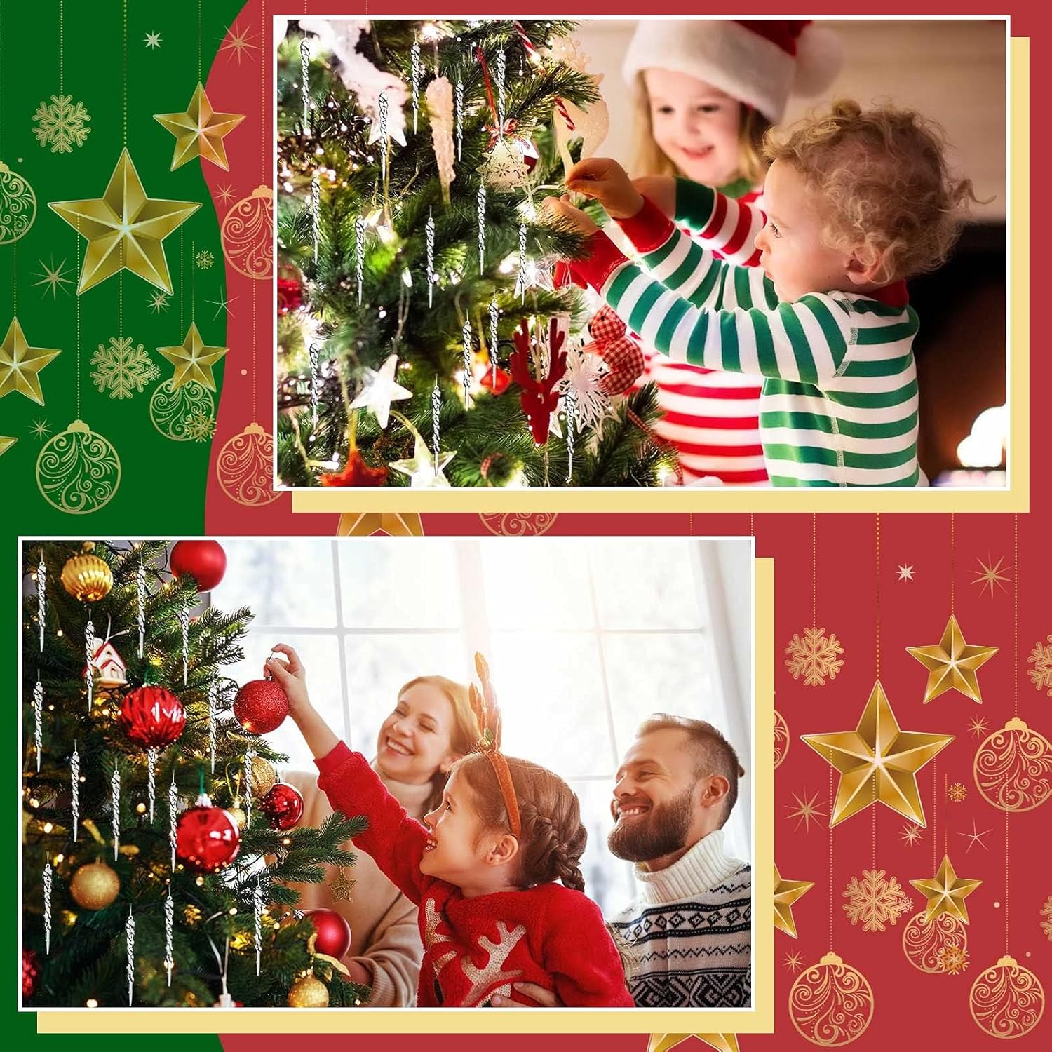 Christmas Icicle Ornament: You love this set of icicle ornaments for christmas tree decoration items. Use it for the christmas decoration items at your window or on a track of lights for the perfect wintry feel. Material: Our christmas icicle decor are made of high-quality plastic material, durable and non-toxic, please feel contable to use