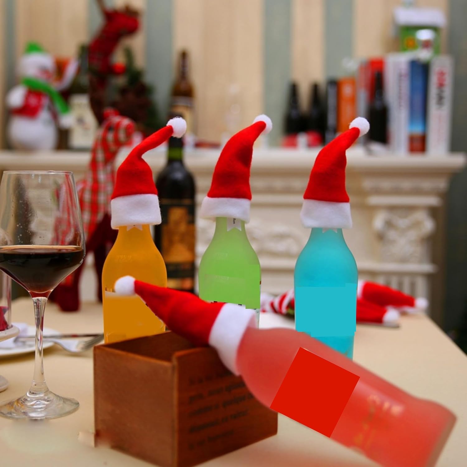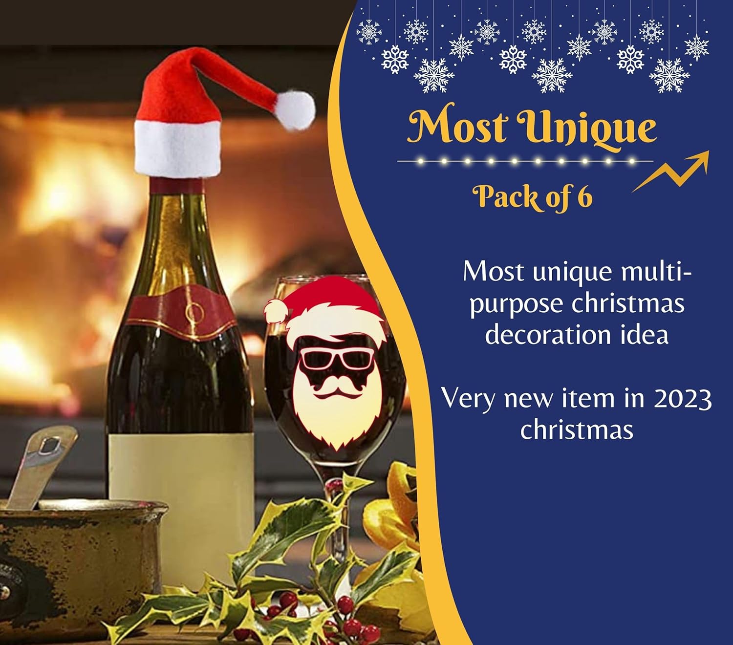 Package Contains: Ho Ho Ho, Merry Christmas, you will get set of 6pcs premium quality cute mini santa caps, a new and exotic idea to decorate your Christmas party bottles, dining table, spoon cover and many more, for christmas decorations items for home, christmas decor, christmas decoration,