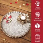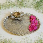 2. Artisanal Craftsmanship- This decorative leaf tray can be used as a Table Centerpiece, decor item, dressing table decor piece or as a flower decoration tray, jewellery, cosmetics, and bathroom tray for accessories. You can use this beautiful tray for home decor in Diwali decoration and Diwali pooja or welcome decor for offices, restaurants, home, cafes. The flower design symbolizes purity, enlightenment, and beauty, making it a meaningful and aesthetically pleasing addition to your decor.