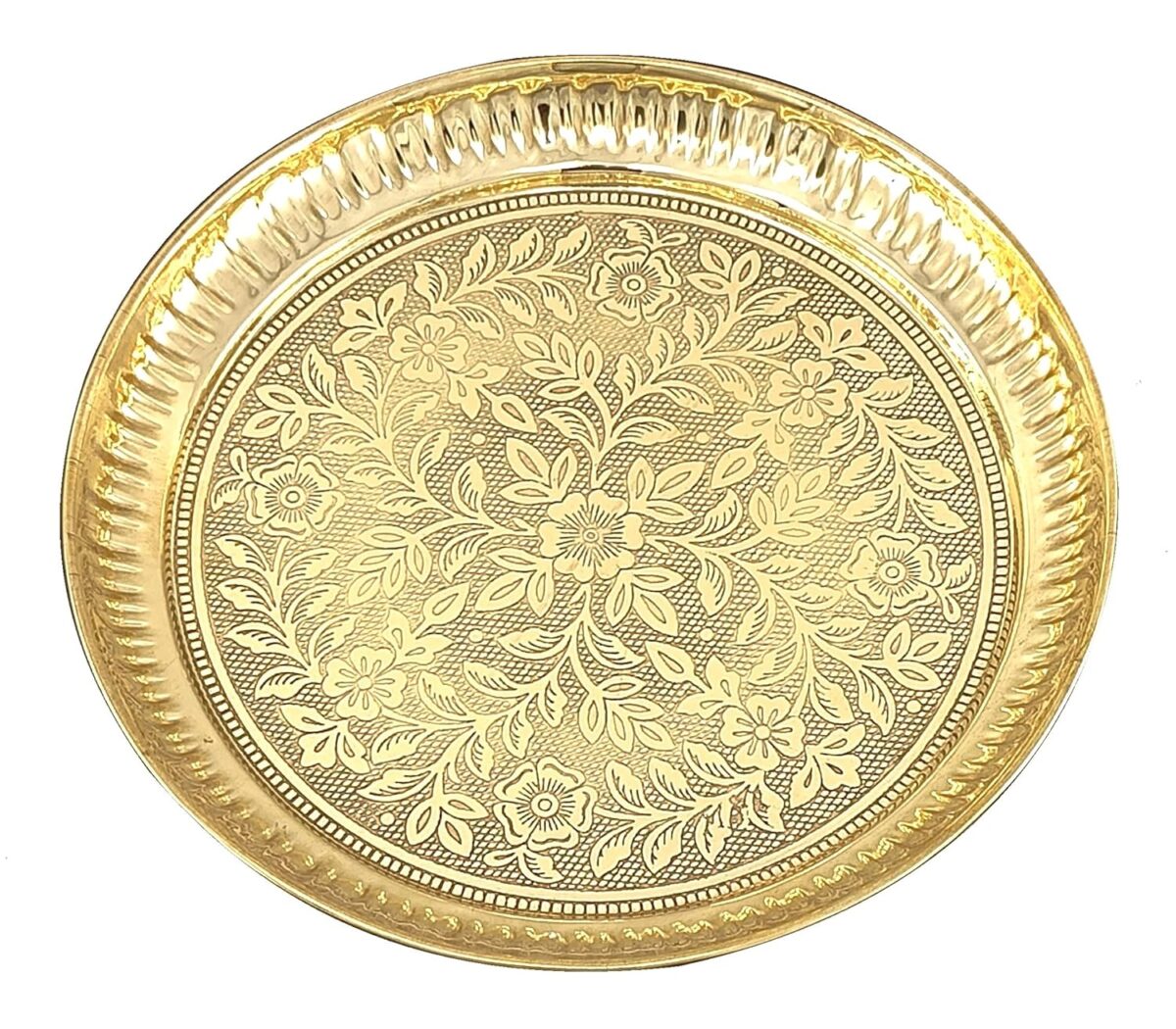 Designer Engraved Brass Pujan Thali, Beautifully Embossed Gold decorative Puja Plate