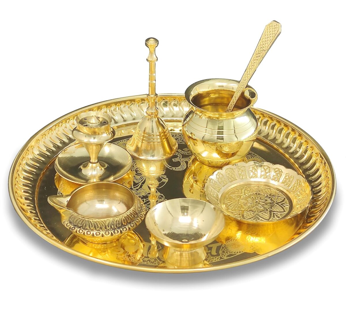 with Plate, Kalash, Spoon, Bowl, Agarbatti Stand, Kuber Diya, Ghanti