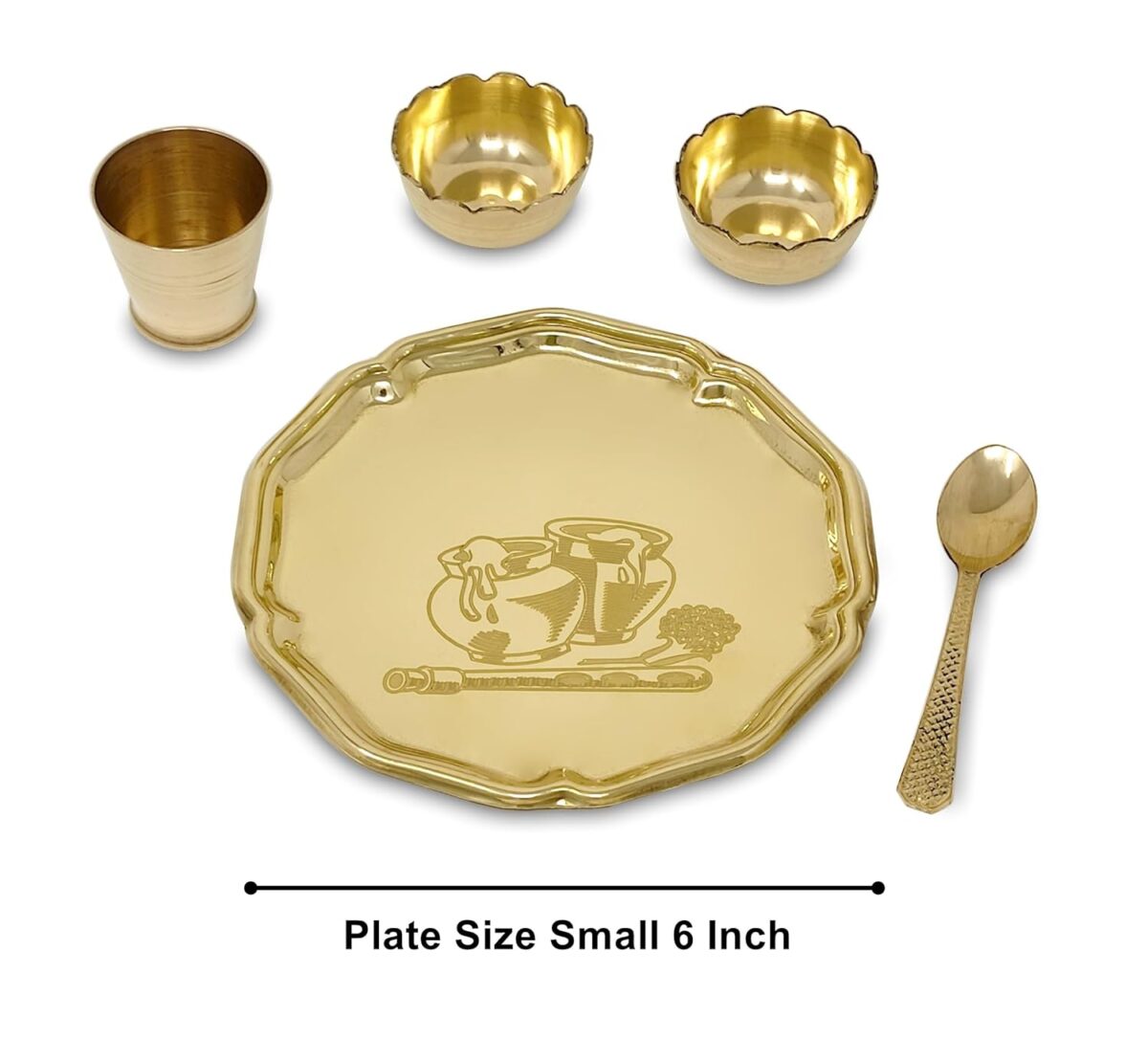 3 reviews for BENGALEN Pooja Thali Set Brass Very Small 6 Inch Designed Laddu Gopal Bhog Thali Set for Kanha Janmashtami Decoration Puja Item Festival Puja Krishna Bhog Set for Home Office Mandir Return Gift Items