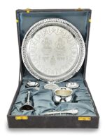 Plate Diameter – 9 Inch | This pooja plate and articles are plated with 999 pure silver.