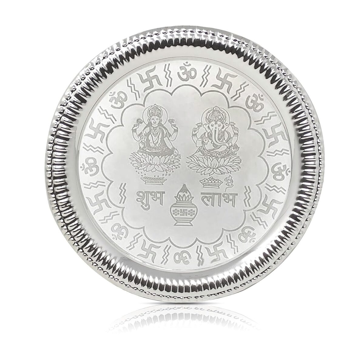 Plate Diameter – 9 Inch | This pooja plate and articles are plated with 999 pure silver.