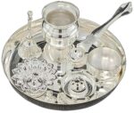 Plate Diameter – 7 Inch | This pooja plate and articles are plated with 999 pure silver.