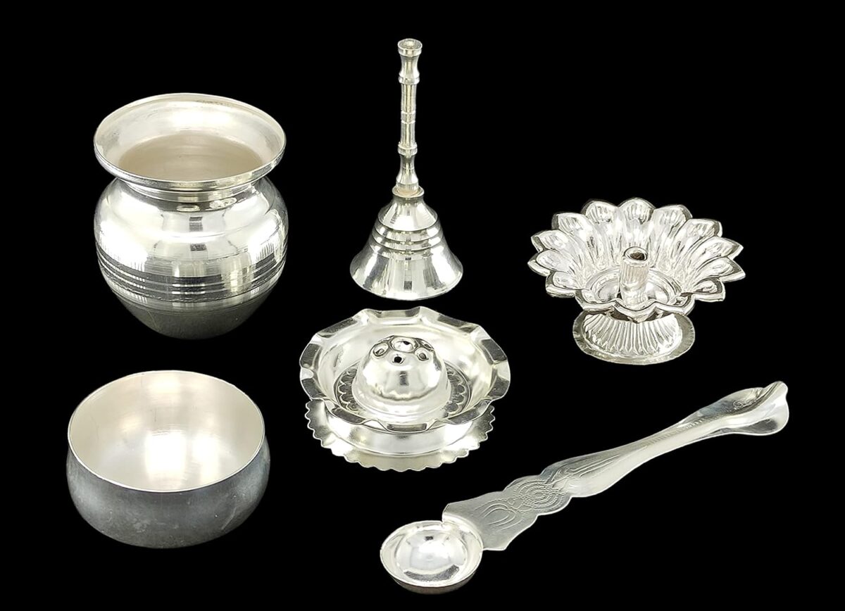 with Plate, Diya, Agarbatti Stand, Bowl, Spoon, Kalash, Ghanti