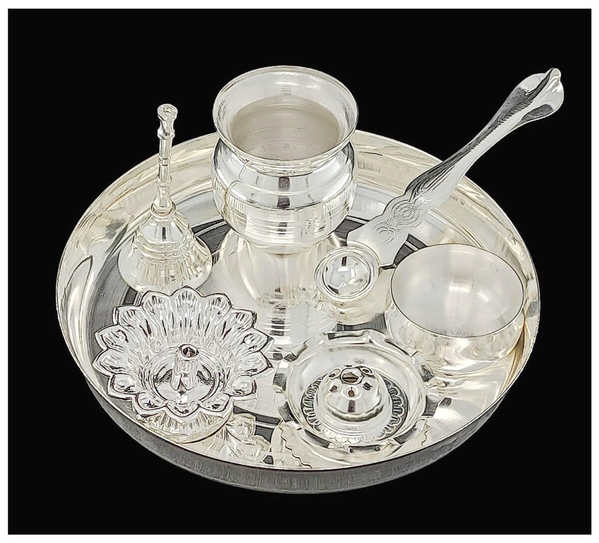 Plate Diameter – 7 Inch | This pooja plate and articles are plated with 999 pure silver.
