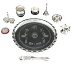 Bengalen Pooja Thali Set in Silver Plated consists of an intricately designed Pooja plate, as well as, an assortment of their items necessary for performing various religious rites during auspicious occasions
