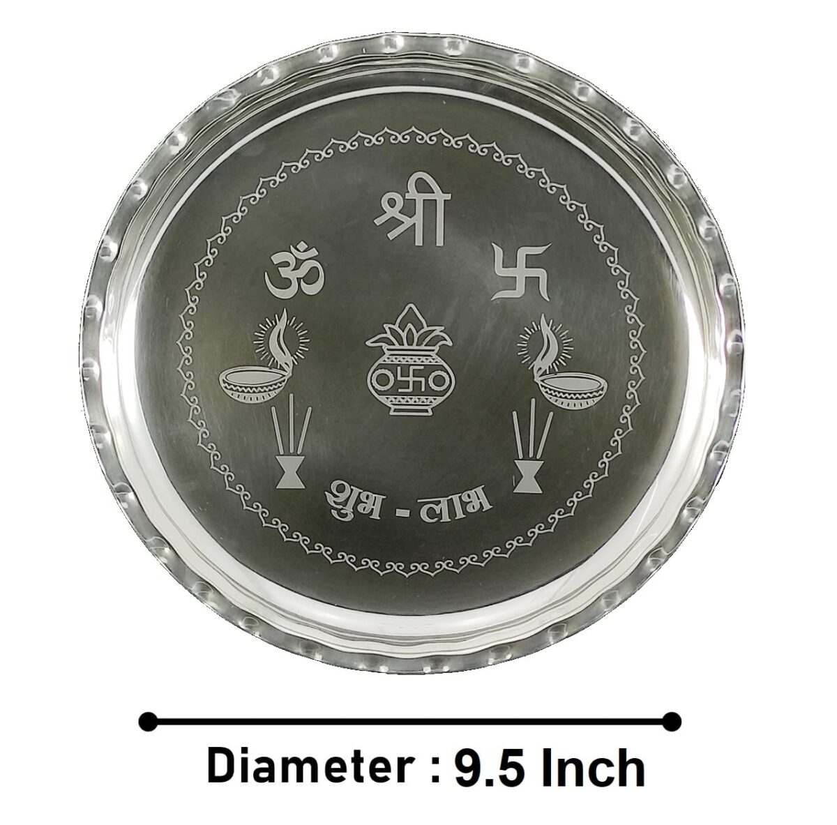 Beautifully polished and crafted this 9.5 inch Pooja Thali beautifully. Perfect for worship place as well as special occasions/ festivities.