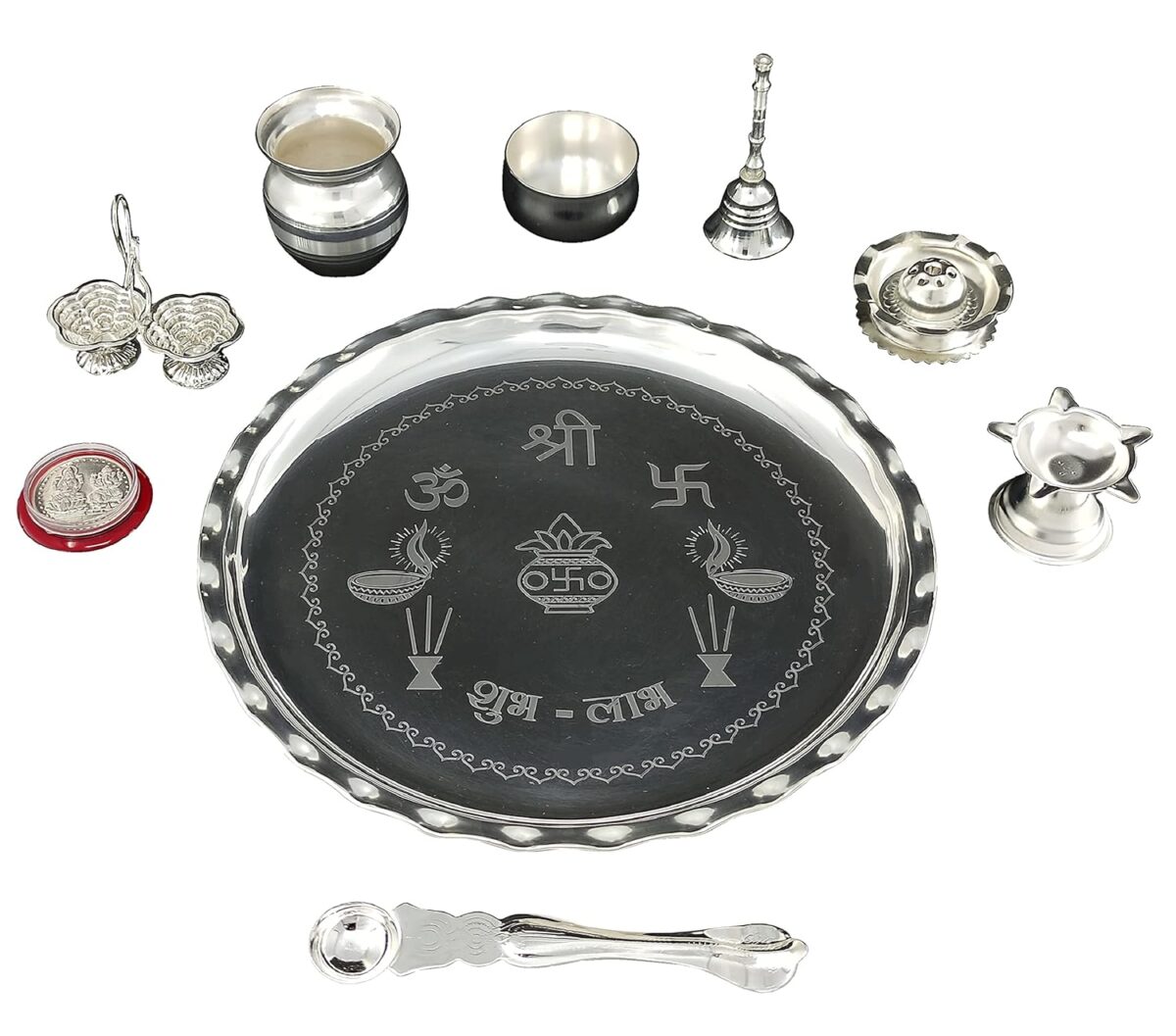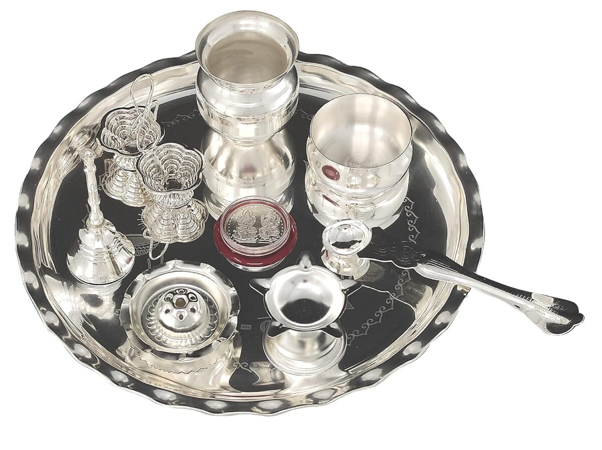 We ordered this product for our Ganpati celebration and the quality was so impressive. We loved the polish and shine of every piece. Highly recommended. Just a suggestion, if they had added a Kalash along, it would have been the complete package. Overall too good, worth the price!