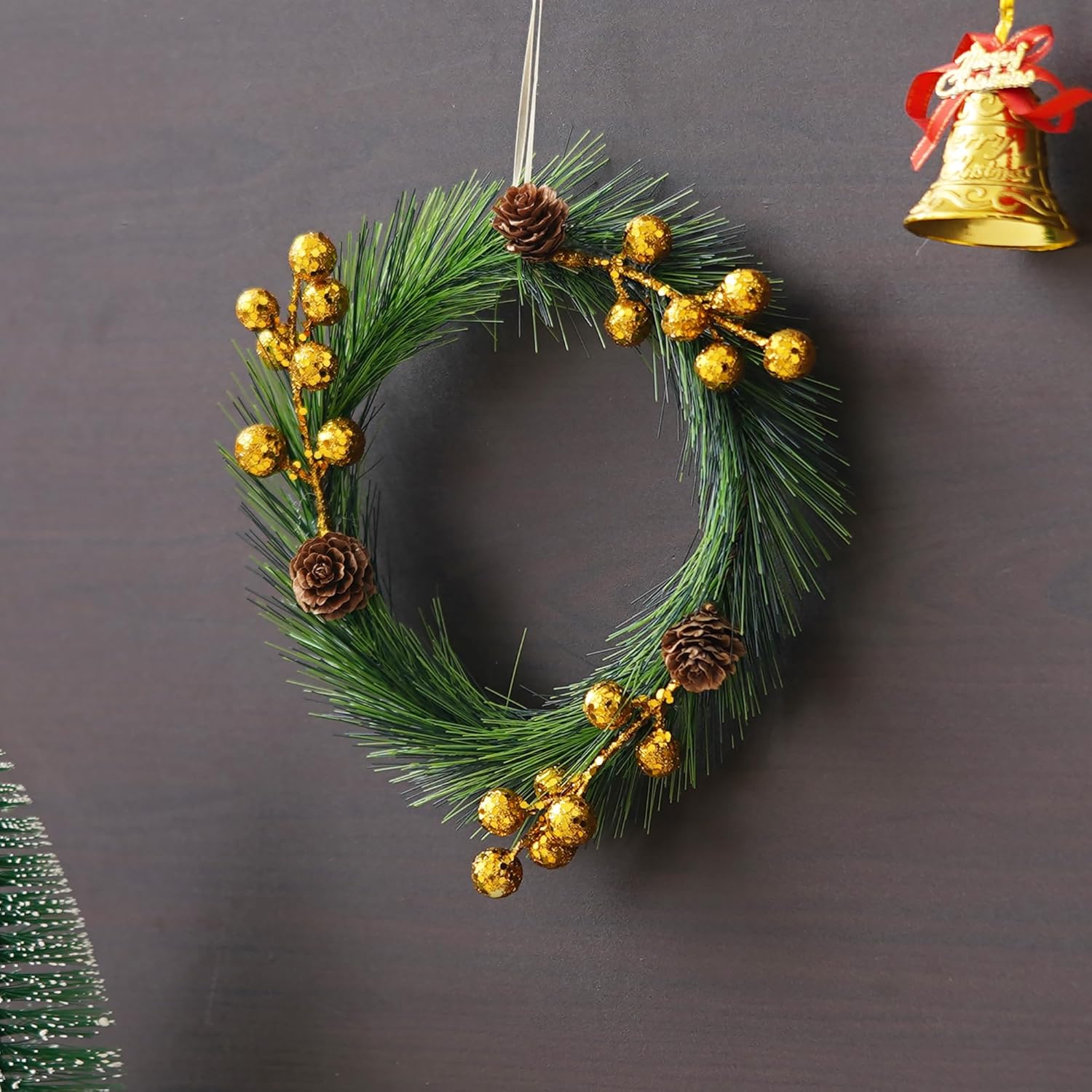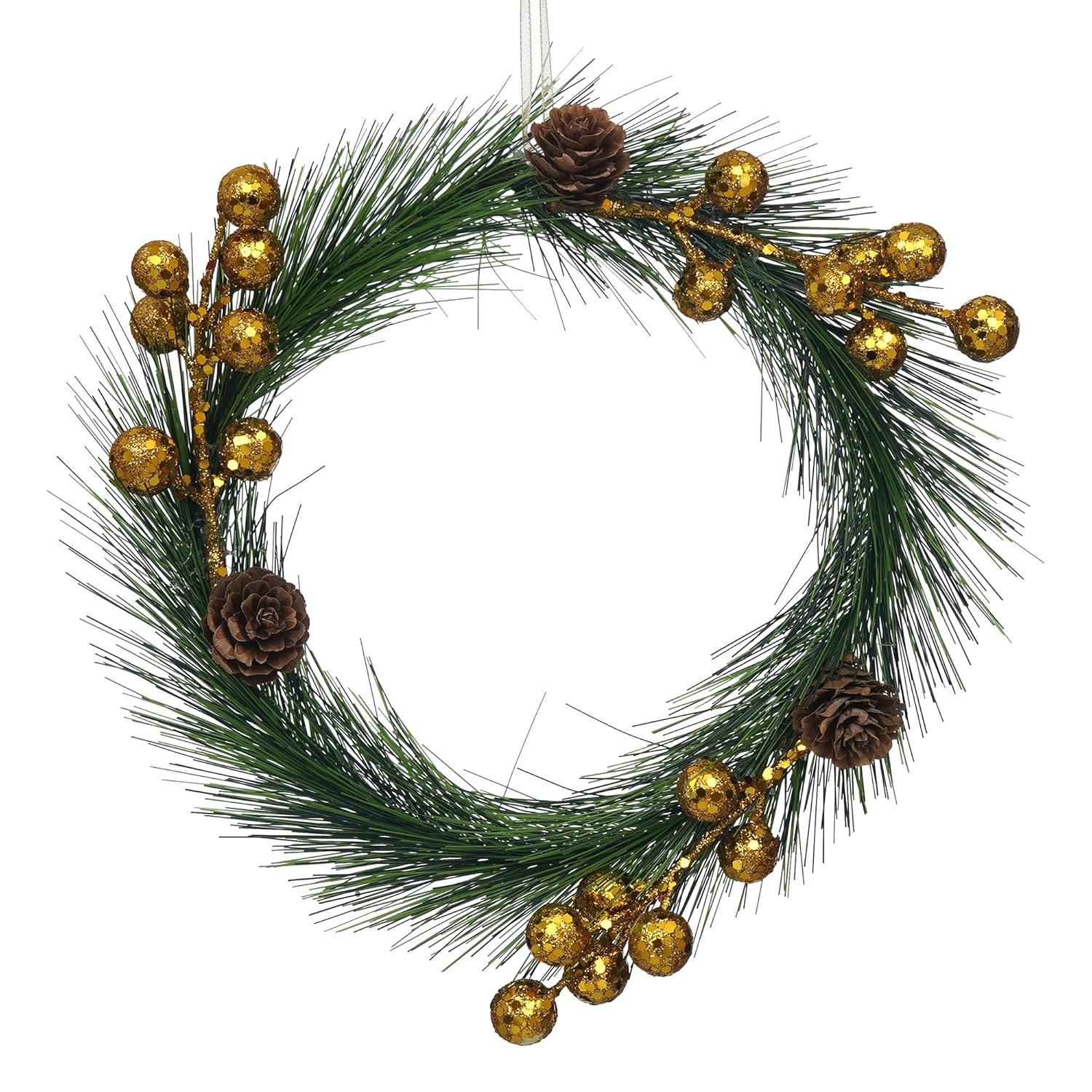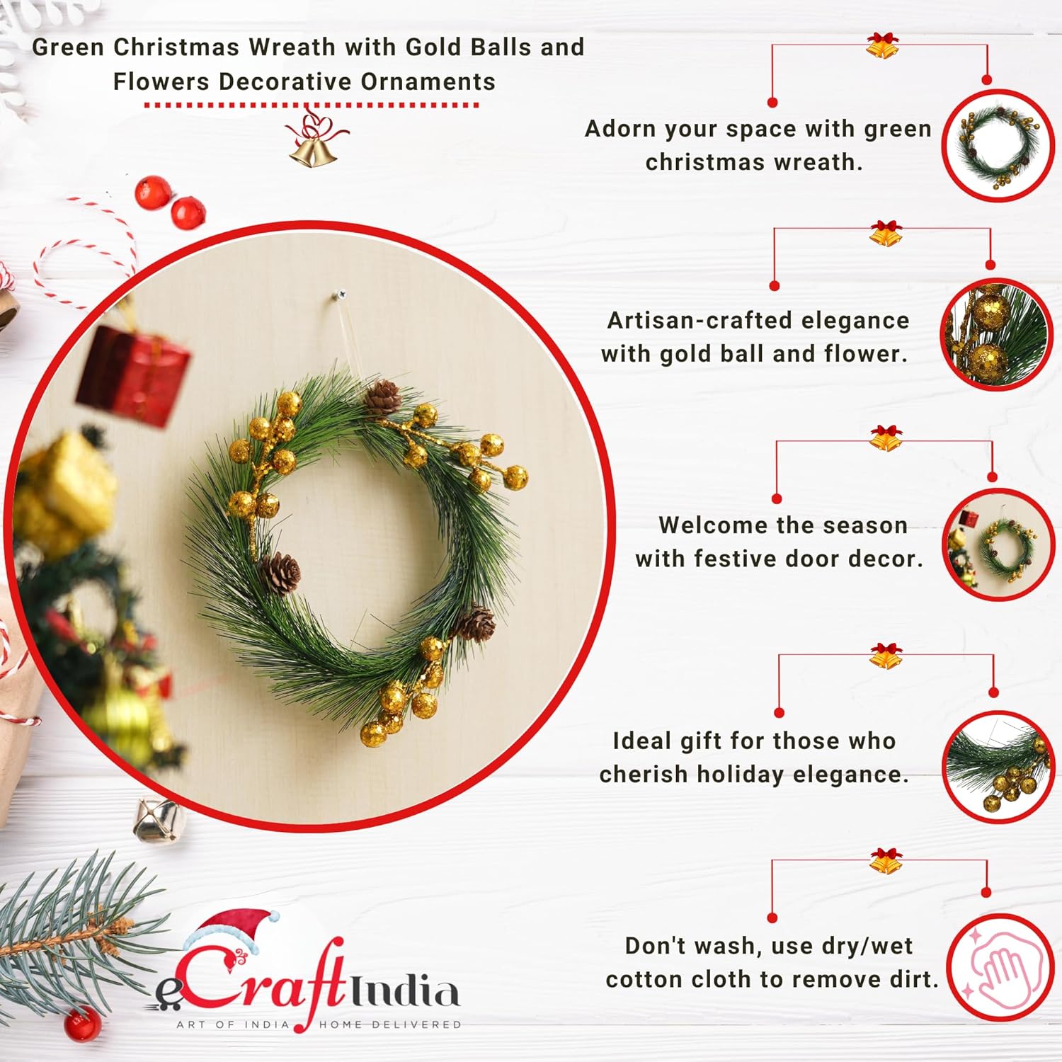 Package Content – 1 Green Christmas Wreath with Gold Balls and Flowers Decorative Ornaments