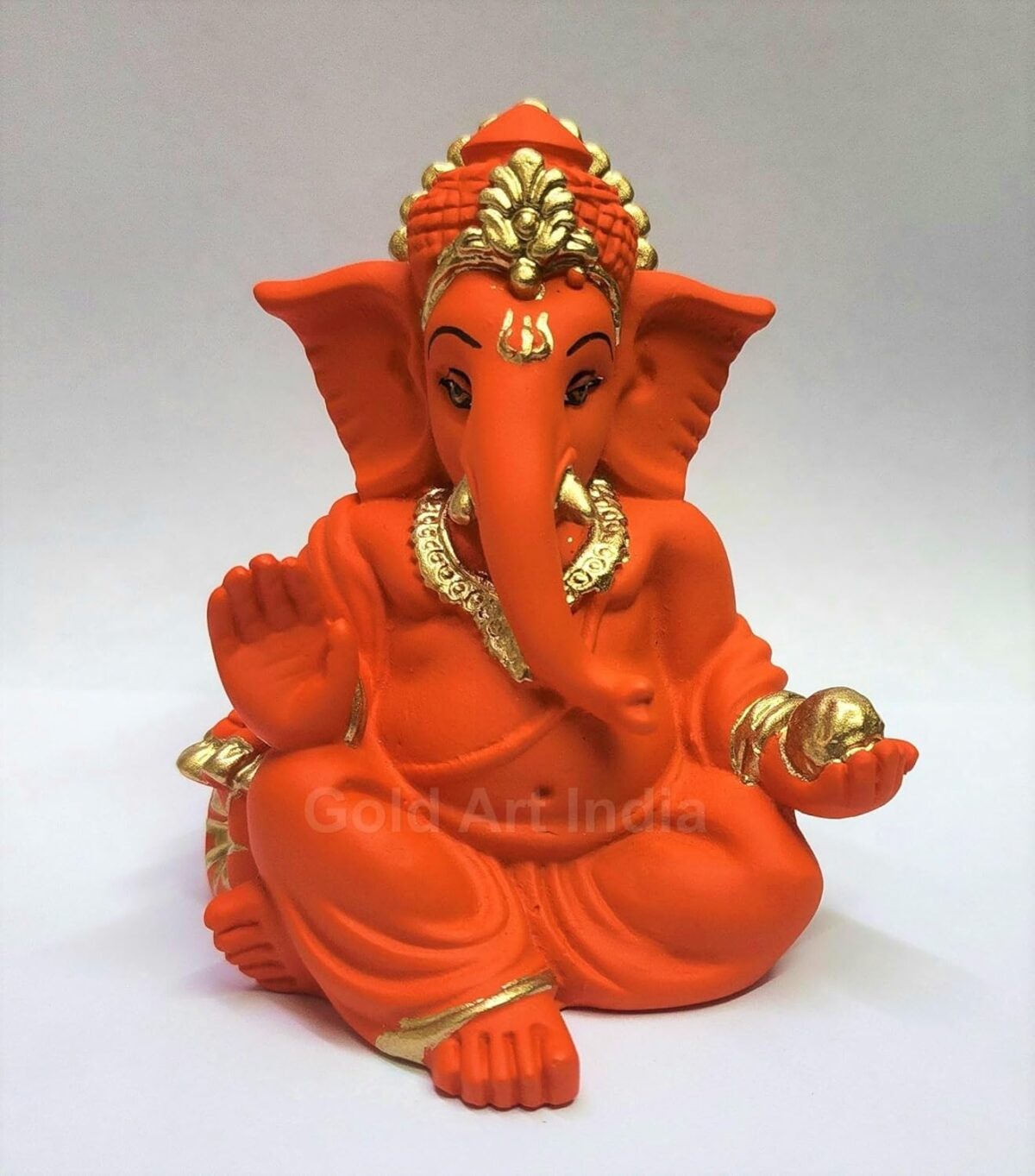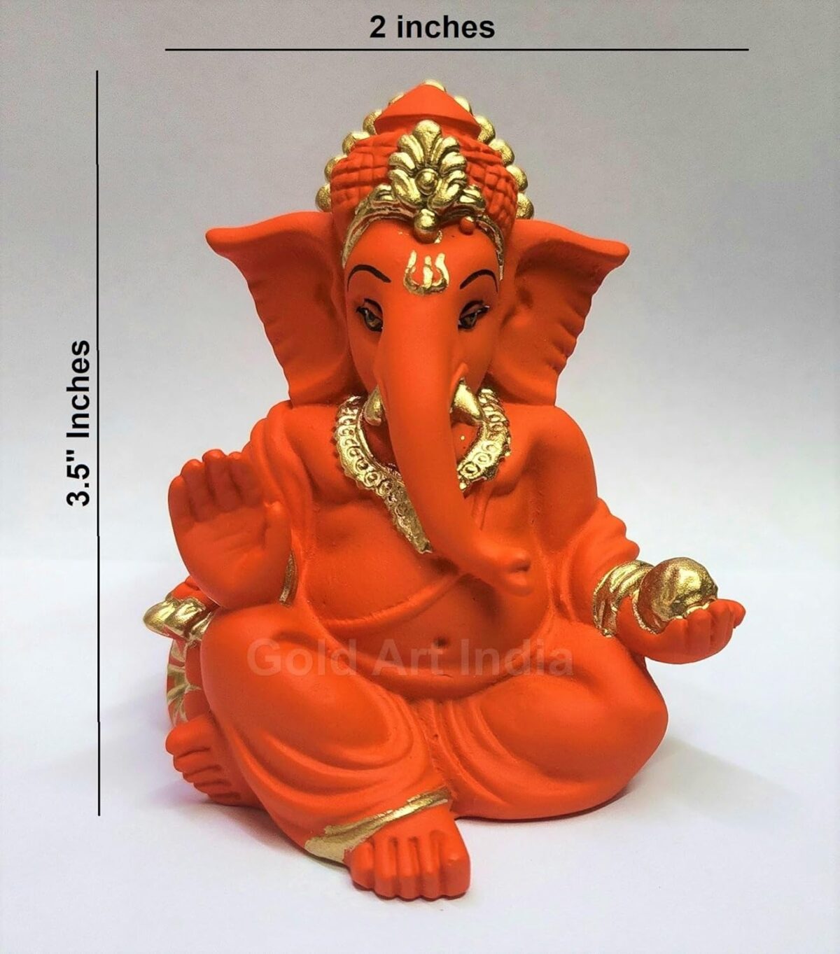 Size: Height 3.5 Inches x Width 2 Inches | Weight: 140 Grams | Material: Polyresin with Orange Terracotta hand painted Package Contents: 1. Orange terracotta Ganesha Idol