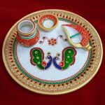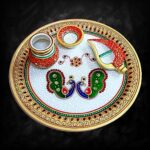 Package Content – 1 Marble Handmade Pooja Thali With 1 Lota, 1 Sindur Dani, 1 Deepak
