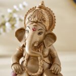 “✨ Golden Aura of Prosperity: Adorned in a rich golden finish with subtle traditional accents, this Ganesha idol radiates opulence and auspiciousness, inviting wealth and good fortune into your home.Dimensions 8.5 cm x 7.5 cm x 15 cm”