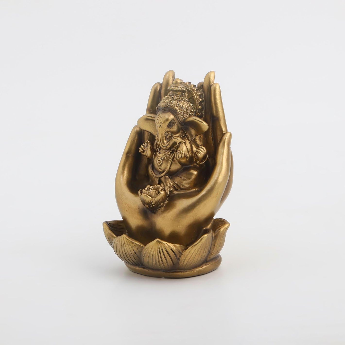 Embrace spiritual harmony with this beautifully crafted golden Ganesha. A powerful symbol of success and the removal of obstacles, this versatile statue enhances any space – from a home altar to a desk or entryway.