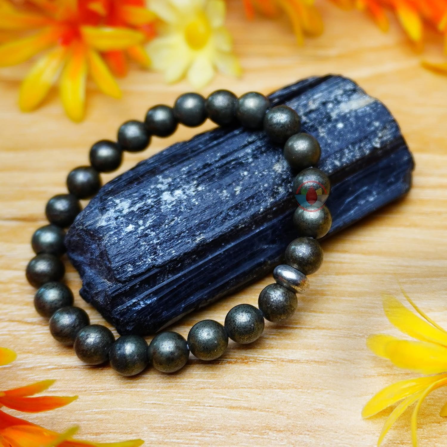 Golden Pyrite Bracelet with Certificate For Reiki, Balance Chakra, Positive Energy, and Healing. Golden Pyrite Stone Bracelet 8 mm. 8mm Gemstones Round Beads Stretchable Bracelet for Men and Women.