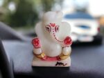 Elevate your home, office or car decor with this exquisite 3-inch Makrana marble Ganesha idol from SAUDEEP INDIA. Crafted with meticulous attention to detail, this beautiful white Ganesh murti is a stunning showpiece that radiates serenity and spirituality. Ideal for your home temple, main entrance, office desk or car dashboard, this Ganpati figurine sculpture adds an auspicious touch to any space. With its smooth, polished finish and intricate detailing, this marble Ganesha idol is a true work of art that will captivate and inspire. Embrace the divine energy and bring prosperity into your life with this magnificent marble Ganesh showpiece from SAUDEEP INDIA.