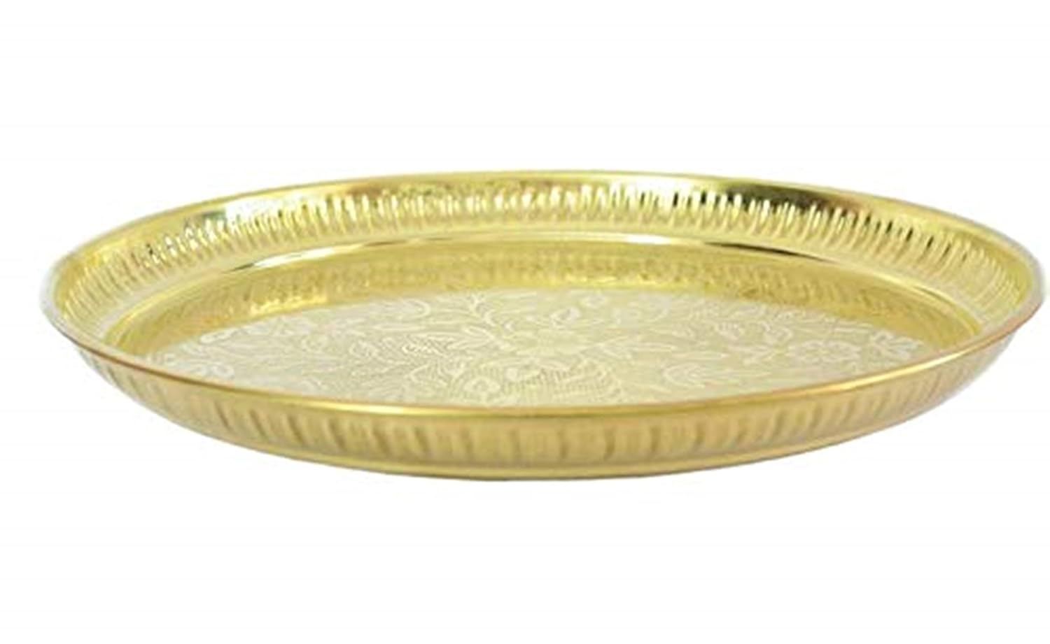 Made of Brass, this intricate floral design will add a classic touch to your home or office. It features flowers hand-carved into the metal, and it’s available in an elegant gold tone. Our handmade puja thali collection is made with a life-like quality and modern design. Its lovely brass frame with a flower embossed pattern on the side adds a quaint touch to your dining table.