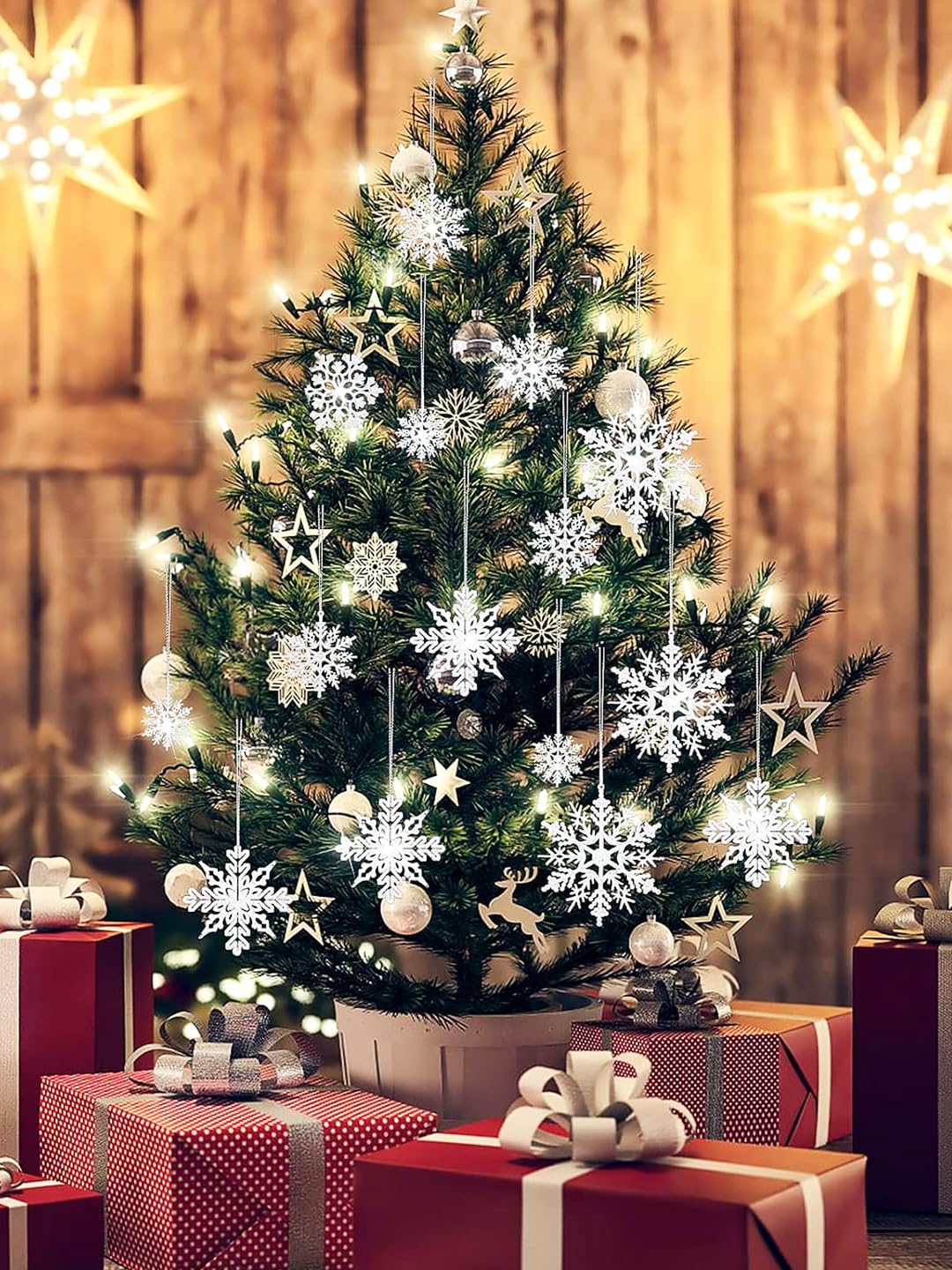 CHRISTMAS TREE SNOWFLAKES: Featuring sparkly glitters on the surface, these white snowflakes tree ornaments add much more sparkle to your Christmas tree decorations, just let it snow.