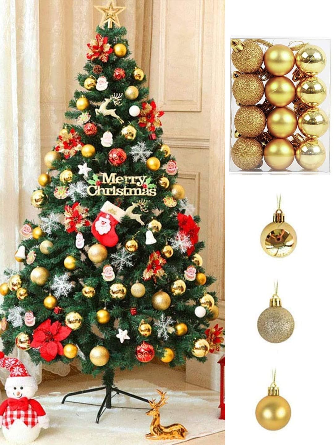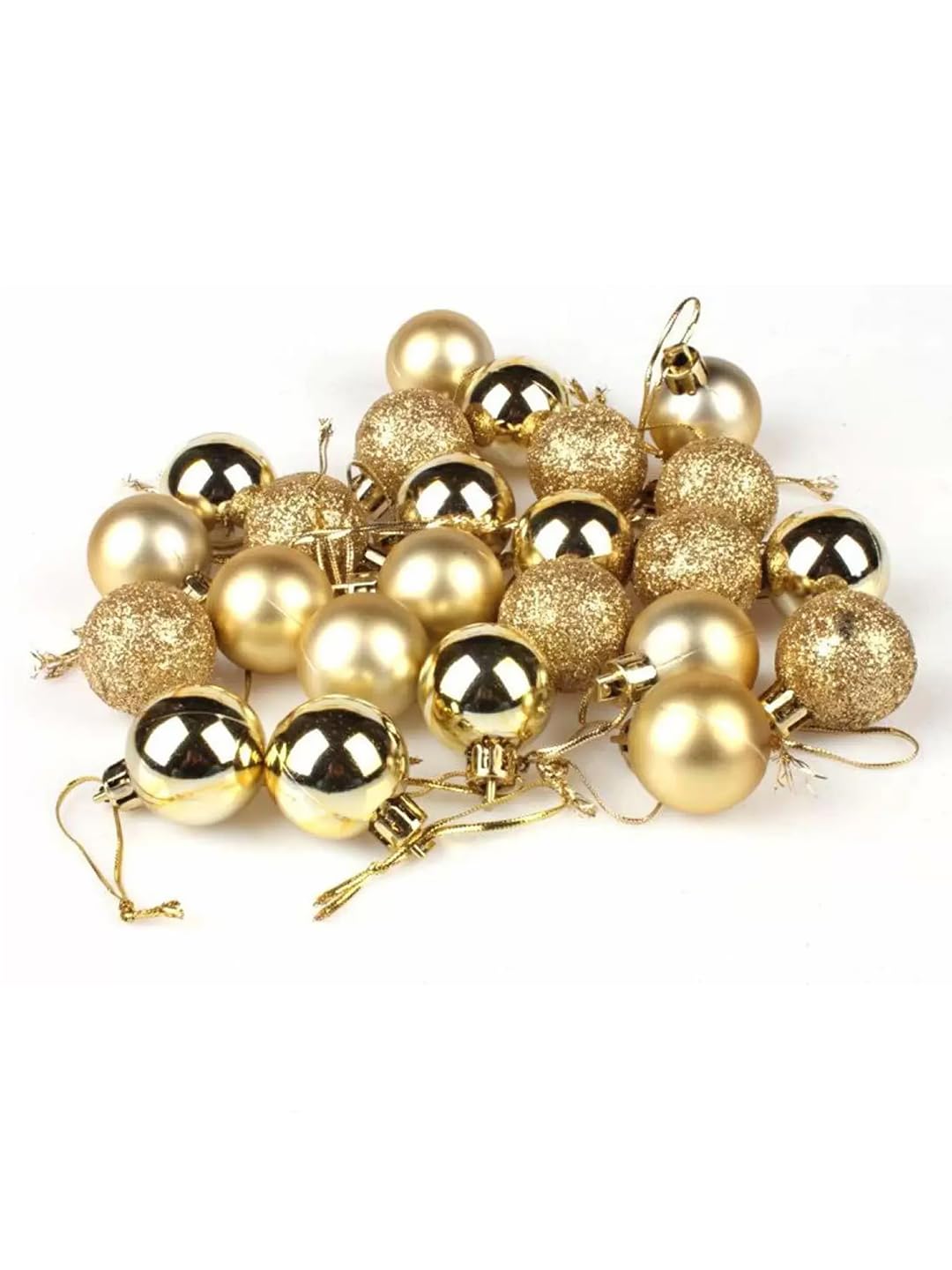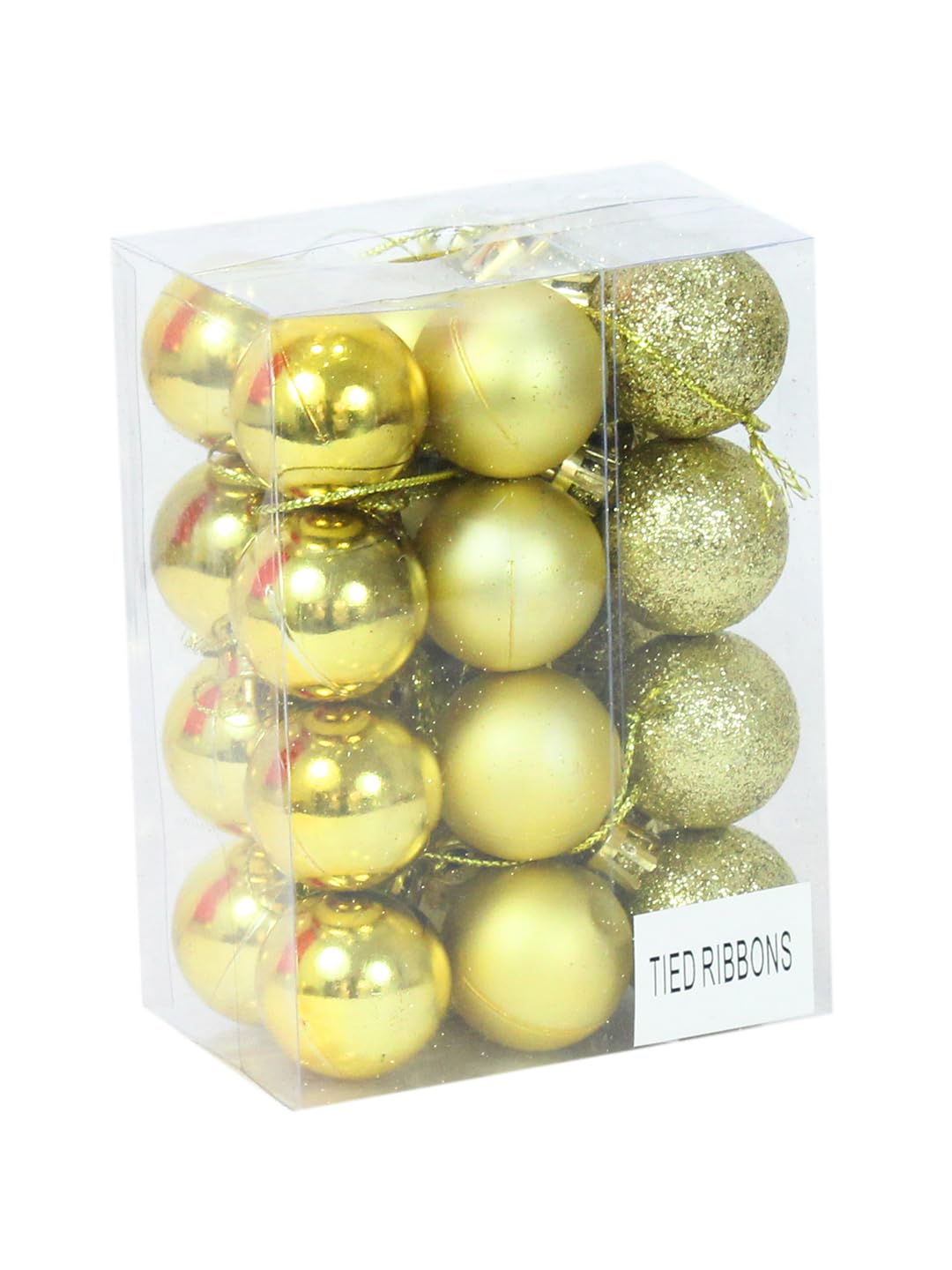 TIED RIBBONS Pack of 24 Christmas Tree Decoration Items Balls Hanging Ornaments Props Xmas Accessories (Plastic, Golden, 3.8 cm) – Christmas Decorations Items for Home Decor Office Church