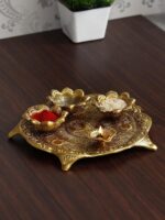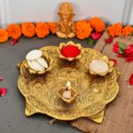COMPLETE SET: Includes a decorative thali with 4 lotus-shaped diya holders, perfect for traditional aarti and religious ceremonies