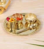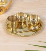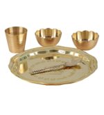 Premium Brass Construction: Made from high-quality brass, this Thali set is durable, long-lasting, and resistant to tarnish, ensuring it retains its beautiful golden shine for years.