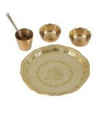 Complete Pooja Set: This Brass Pooja Thali Set includes 1 Thali, 2 Katoris (bowls), 1 Glass, and 1 Spoon, providing a comprehensive set for your bhog and puja rituals.
