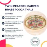 Exquisitely Handcrafted: This 6-inch brass pooja thali features intricate twin peacock carvings, adding a touch of elegance to your puja essentials. This brass pooja thali is ideal for all kinds of religious ceremonies, making it an essential addition to your puja rituals.