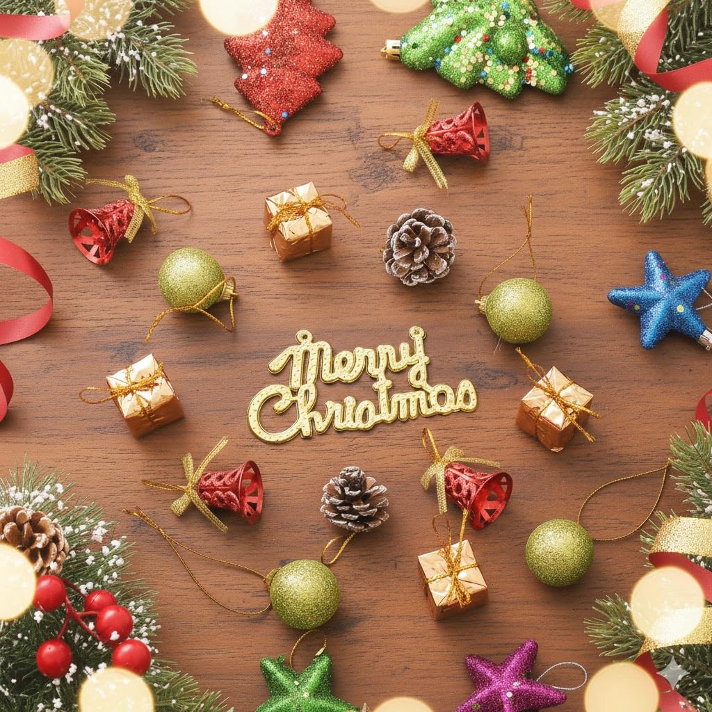 eCraftIndia Christmas Tree Decoration Items Merry Xmas Cutout Flowers Gifts Bells Balls (Pack of 15) Hanging Ornaments Props Christmas Decorations for Home Office