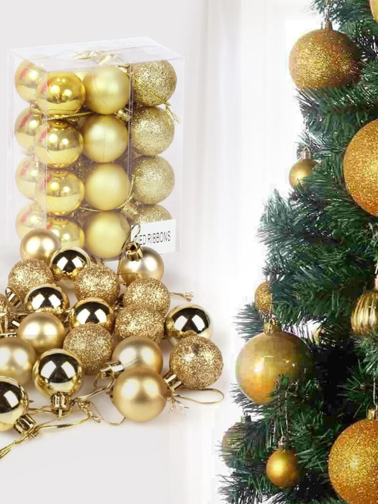 TIED RIBBONS Pack of 24 Christmas Tree Decoration Items Balls Hanging Ornaments Props Xmas Accessories (Plastic, Golden, 3.8 cm) – Christmas Decorations Items for Home Decor Office Church